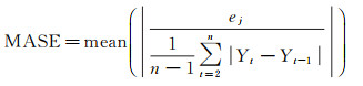 MASE是对时间序列预测准确性的一种度量[27]。对于时间序列数据,通常使用最近观测值的方法定义一个比例偏差值