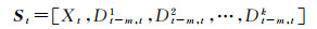 式中,k为2,即表示降雨和库水位两个属性,St∈RN×(P+k*(m+1))。