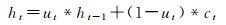 如图 3(b)所示,GRU由重置门和更新门组成,若当前时间特征矩阵为xt,ht-1表示上一时刻t-1的隐藏状态。重置门rt用于决定输入状态与历史信息的结合程度,即候选隐藏状态ct,更新门ut用于控制历史信息的忽略程度,并结合候选隐藏状态ct推导出最终隐藏状态ht。其中,σ和tan h为激活函数。