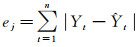 式中,ej为每个监测点实际位移值与预测值之间的误差之和,即
