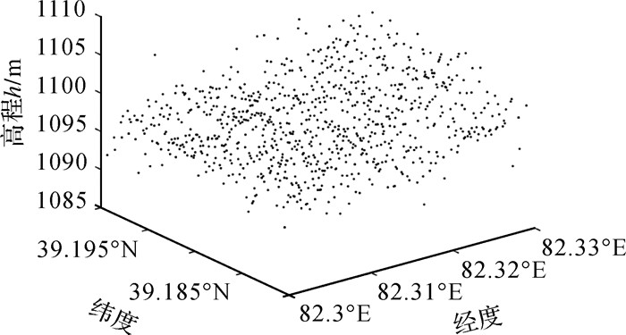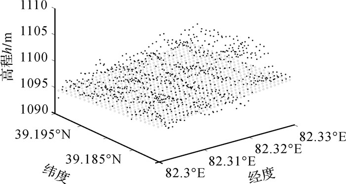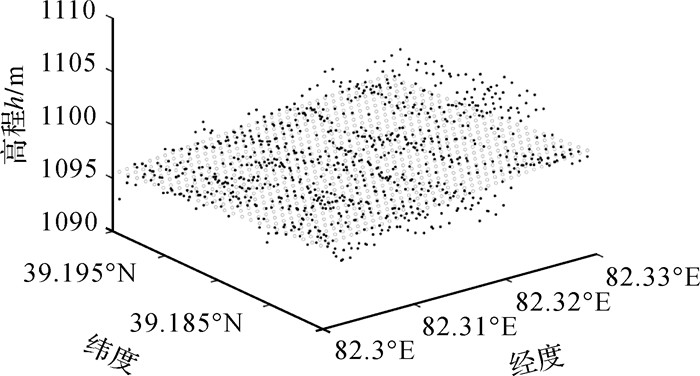 由图 8可以看出,本文获取的DTM模型为一个陡峭的曲面,高程最高点和最低点的偏差为18.892 8 m;同时,通过对比图 8和图 9中的DTM模型可以看出,尽管本算例加入的乘性误差的标准差仅为0.002,但其对DTM模型的高程产生了明显的偏差。此外,由图 10和图 11可以看出,两种方法均能较好地拟合原始的DTM模型,但通过仔细对比也可以发现,SUT法较bcWLS法能够更好地拟合原始的DTM模型,表明本文方法在实测数据处理中的优势。