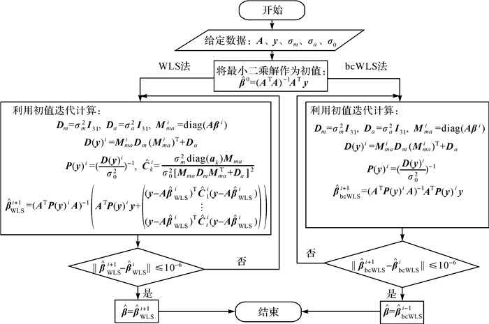 (3) 由式(14)计算加乘性混合误差模型的偏差改正加权最小二乘迭代解。