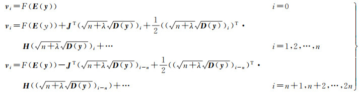 式中,J为Y在E(y)处展开的n维一阶偏导向量;H为Y在E(y)处展开的n×n阶海森矩阵;RmSUT和RcSUT分别代表四阶及以上的高阶项;vi=