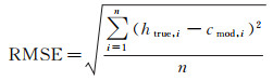 式中,n表示观测值个数;htrue, i表示获取的DTM模型高程真值;cmod, i表示模型反演的高程值。