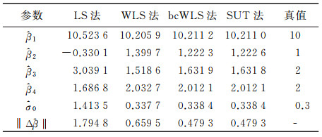1.2 加乘性混合误差模型的最小二乘解对式(2)应用最小二乘准则,可得目标函数为