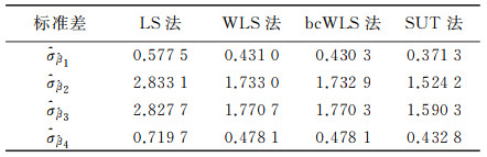 根据求解目标函数自由极值的原理,将函数F1(β)对β求偏导,并令其为0,可得加乘性混合误差模型的最小二乘解为