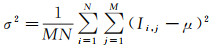 式中,Ii, j为图像在点(i, j)处的强度值;M×N为图像的高度和宽度值。