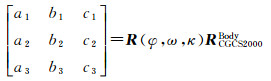2.2 星地相机夹角系统常差修正星地相机夹角变化是影响定位精度的重要因素,在相机参数标定过程中需对星地相机夹角进行标定,修正姿态系统的常差变化。对式(1)作变形,令