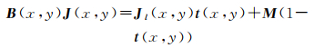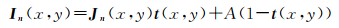 式中,In(x, y)表示观测的自然影像;Jn(x, y)表示无云雾的影像;t(x, y)为云雾对光的透射率;A为大气光强度,夜晚条件下A相当于月光影响强度M。Jn(x, y)可以进一步精确表示为含有点扩散影响的Jl(x, y),因此结合式(3)和式(4),B(x, y)J(x, y)可表达为