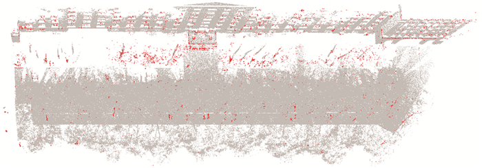 | 注:红色表示错误标注的点,灰色表示正确标注的点。 图 9 Dataset Ⅲ场景标注错误点分布 Fig. 9 Dataset Ⅲ scene labeling error points distribution |
