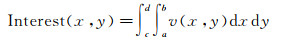 Interest(A)、Interest(B)、Interest(B′)分别是兴趣特征值域A,待分发数据B和变换后B′的兴趣度,对于二维区间〈[a, b], [c, d]〉,凝聚在该区间的兴趣度为在该区间上的分布特征函数做定积分,如式(11)所示