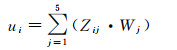 式中,Zij为第i个待选数据在元素项xj的兴趣关联度,Wj为元素项xj的权重。