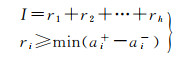 1.4.1 一维连续覆盖元素区间单元对于时间x1、分辨率x4,用户k个需求样本值用一维区间数来表示,即Ai=[ai-, ai+], i=1, 2, …, k,其中ai-、ai+分别为样本值的下上限。令I表示包含k个需求样本中所有时间范围、分辨率范围的最小区间,则I=[min(ai-), max(ai+)],i=1, 2, …, k。为计算x1、x4主题元素在相应I上的需求分布特征,这里将I分为h个连续的区间单元Ii,为避免过度破碎化,区间长度ri可根据元素项特征及用户需求进行合理划分,一般ri大于等于最小样本区间,即存在