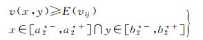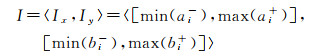 对于空间元素x2,k个需求样本值用二维区间数表示,即Ai={[ai-, ai+], [bi-, bi+]}, i=1, 2, …, k,其中ai-、ai+、bi-、bi+分别为第i个样本经度下、上限和纬度下、上限。令I包含所有样本值最小二维区间,则