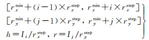 式中,i=1, 2, …, k。〈Ix、Iy〉表示包含k个样本中所有样本经度值和纬度值的最小二维区间。经纬度方向分别取固定区间长度rxstep和rystep,则Ix、Iy被均匀分割为h个和t个区间,每个二维区间Iij存在