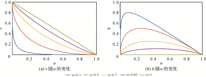 | 图 4 不同参数下非隶属度、犹豫度随隶属度的变化 Fig. 4 The change of non-membership degree and hesitance degree with membership degree under different parameters |