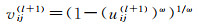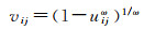 虽然vij可通过最小化式(9)得到,本文选用直觉模糊补集生成算子中的Yager算子[24]计算像素类属非隶属度,即
