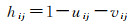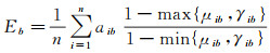 像素类属犹豫度刻画像素对聚类隶属的不确定性,由像素类属隶属度和非隶属度确定,设像素类属犹豫度矩阵为H =[hij]n×c,其中