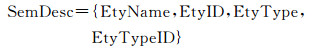 式中,EtyName为地理实体名称;EtyID为实体标识码,即能够唯一标识地理实体的编码;EtyType为实体类型,即实体在概念分类体系中所属的概念;EtyTypeID为实体类型码,即实体所属类型的编码。