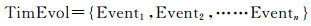 地理实体的状态改变考虑两种情况:①地理实体经历了某关键事件,但没有特征值的改变,则仅简要记录事件信息;②实体经历了某事件后其他维度的特征值发生了改变,针对这类情况,借鉴时空数据模型的基态修正思想[21]及时空对象属性的动态表达方法[20],设置状态集合,记录该事件引起的地理实体相较初始状态或者上一状态的变化情况。对时间演化维度的定义为