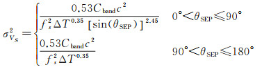 1.2.2 系统误差 1.2.2.1 太阳相位闪烁误差载波通过日冕时会产生相位闪烁,这给多普勒测速带来了随机误差。相位闪烁对多普勒测速误差σVS2取决于太阳-地球-探测器(Sun-Earth-probe, SEP)角度、载波频率和积分时间,σVS2近似值为[18]