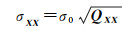 式中,σXX表示未知数的中误差。QXX表示协因数矩阵,它的计算方法见式(14)