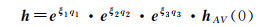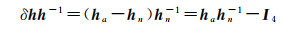 在式(5)左边,令ha表示由激光跟踪仪测量得到的A坐标系到V坐标系的实际位姿矩阵。令hn表示由理论运动学参数代入式(4)后算得的理论位姿矩阵。δhh-1表示在V坐标系下描述的ha与hn之间的偏差,它可以采用式(6)进行计算。ζ=[ξ]V,定义为旋量ξ的旋量坐标
