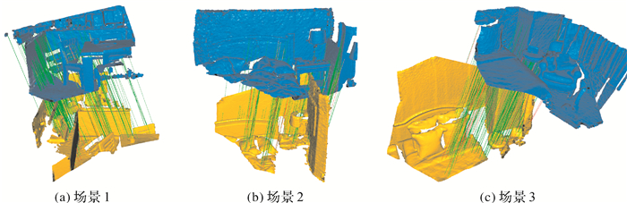 图模型不受点云位移和旋转的影响,较好地描述了三维点间的几何结构。针对传统特征匹配策略易受噪声和对称结构等不利因素影响的问题,本文利用图模型的几何信息作为对应点提取的约束条件,优化同平台点云初始匹配结果。图匹配可作为特征匹配方法,适用于多种基于特征的同平台点云配准技术。为充分利用点云几何信息优化配准精度,本文提出一种基于空间一致性的同平台点云配准方法(spatial consistency-based registration, SCR)。基于图模型构建具有高阶相似度的特征匹配模型,提出附加冲突行走预防的重加权随机游走匹配算法获取匹配结果,并利用假设检验方法估计点云位姿参数。与FGR和deep hough voting的三元组检验相比,SCR可推广到n元组检验,具有更为广泛的应用价值。