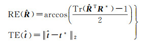 式中,R*和t*分别为旋转矩阵和平移向量真值。配准误差定义为