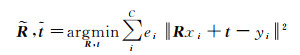 为统一点云坐标系,基于假设验证方法构建点云配准模型。首先,利用PointDSC离群值滤波模块剔除匹配结果中的错误匹配,并获取对应点的内点概率e。令R为旋转矩阵,t为平移矩阵,变换参数求解模型为
