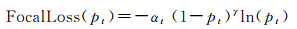Focal Loss[24]是在交叉熵损失基础上改进得到的,用于解决类别占比严重不均衡、难易样本不均衡问题。Focal Loss的定义为