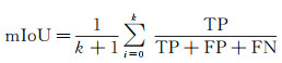 式中,(k+1)为所有类别数(包括背景);TP、FP、FN分别表示正确分类为正类的像素个数、错误分类为正类的像素个数、错误分类为负类的像素个数。