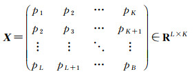 文献[22]首次将传统SSA方法(1D-SSA)用于光谱像素处理。给定光谱向量p=[p1, p2, ..., pB]∈RB,定义一维嵌入窗口L(1 < L < B, K=B-L+1),嵌入得到轨迹矩阵X,即