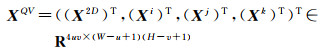 式中,pi, j表示在(i, j)处的像素值。将每个列向量排列得到轨迹矩阵X2D