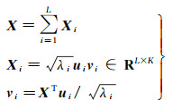 矩阵X的反对角元素相同,也被称为Hankel矩阵。然后,对X进行奇异值分解(singular value decomposition, SVD),得到不同子矩阵相加的形式,即