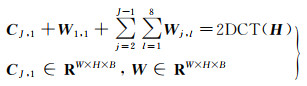 式中,2DCT(·)表示二维离散曲波变换函数;CJ, 1表示HSI包含低频信息的粗图像成分;W1,1表示最精细尺度的细节图像成分;Wj, l表示多尺度、不同方向下高频细节图像成分;J为分解尺度;l为变换方向。然后,保留CJ, 1不变,对所有的细节图像成分应用SSA