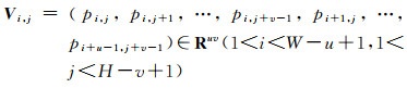 1.2 空间域2D-SSA 1.2.1 2D-SSA文献[40]首次将二维SSA(two dimensional SSA, 2D-SSA)用于HSI空间特征提取。2D-SSA也包含嵌入、分解、分组和重构4个过程,但在嵌入和重构步骤有所不同。对于任一波段图像I∈RW×H,定义一个二维嵌入窗口L2D=u×v(1 < u < W, 1 < v < H),该窗口从波段图像的左上角滑动到右下角,不同位置处L2D内的所有像素拉伸为列向量,即
