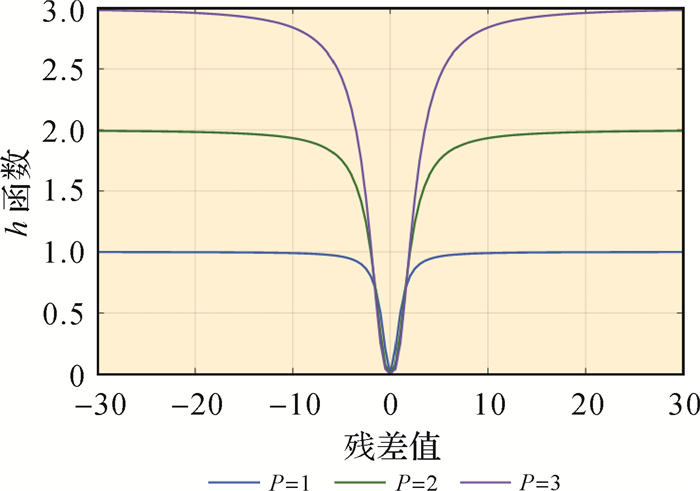 式(23)表明了粗差约束的取值范围,基于此提出了DCS动态协方差缩放策略,该方法大大加快了收敛速度且便于实现。至此,对粗差因子进行约束时,可以令比例函数ψ(sij)由式(24)表示