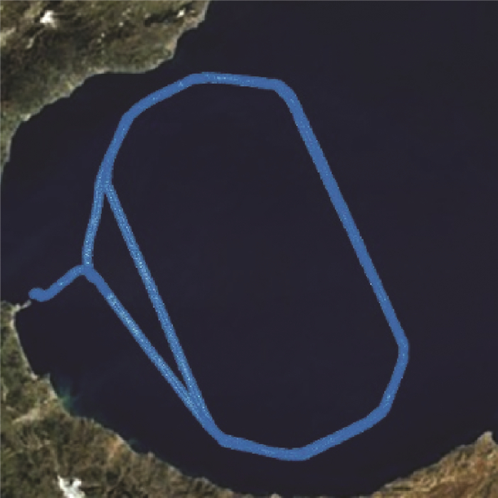 3 试验与分析 3.1 试验条件设置在天津塘沽海面试验中,搭建了装配有GNSS、SINS、DVL等多种传感器的数据采集平台,获取了一艘AUV在水面行驶的数据。图 5为试验期间AUV的航行轨迹。