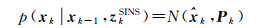 在时间更新时,观测值概率分布即为似然估计。设tk时刻传感器观测值服从均值为zk,协方差为Rk的高斯分布