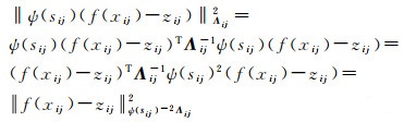 式中,S是估计的测量权重集,k表示各时刻测量值序号,i表示残差超过阈值的测量值序号;假设各个测量间相互独立,j为i时刻测量值与状态变量分量的序号,sij为变量si中的分量,Λi为观测因子的协方差阵,Ξi为切换因子的协方差阵,设两者皆为对角阵。ψ(sij)∈[0, 1]是一个比例函数,用于确定粗差观测因子的权重。可以解释为与约束相关的信息矩阵中的比例因子