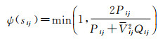 经分析,约束函数随观测误差增大将收敛至Pij,函数图形如图 4所示。因此