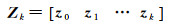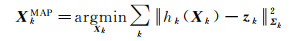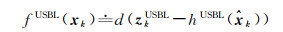 假设AUV搭载了SINS、USBL、DVL传感器, 系统在tk时刻接收到的测量值为zk=[zkSINS zkUSBL zkDVL]T,则所有历史测量值的集合为