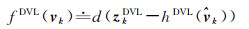 设tk时刻接收到DVL测速信息,DVL利用多普勒效应获得载体对地速度,其观测方程为