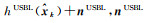 设tk时刻接收到USBL测量信息,获得水面无人艇(unmanned surface vehicle, USV) 精确三维位置和USV上应答器对于AUV上基阵坐标系的相对三维位置信息,观测方程可列为zkUSBL=