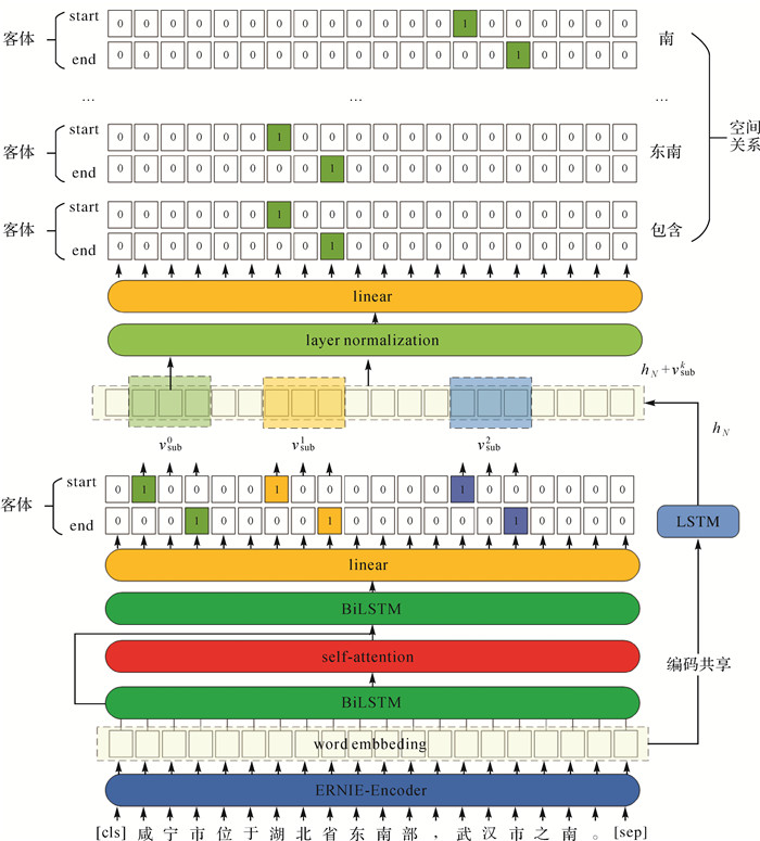 | 图 4 本文提出的用于联合实体和关系提取任务的模型架构 Fig. 4 Architecture of the proposed model for joint entity and relation extraction task |