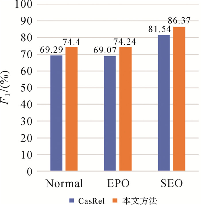 | 图 6 模型抽取不同重叠类型三元组的F1值 Fig. 6 F1 score of extracting triples from sentences with different overlapping type |