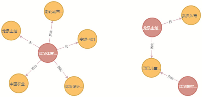 | 图 7 地理空间知识图谱部分示例 Fig. 7 Examples of part of geospatial knowledge Graph |