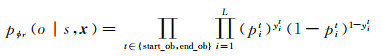 式中,L是句子的长度;yistart_ob是x中第i个标记的客体开始位置的标记,如果是则取1,否则为0;yiend_ob表示客体结束位置。参数θ={ Wstartr, bstartr, Wendr, bendr}。