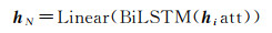 式中,Q、K和V 3个矩阵是将BiLSTM输出的结果H分别通过线性变换处理得到;att是通过softmax得到自注意力计算结果;dk表示矩阵K的维度。将式(2)与式(4)结果融合输入到第二个BiLSTM层提取局部信息。再通过式(5)将结果hN输入主体抽取部分